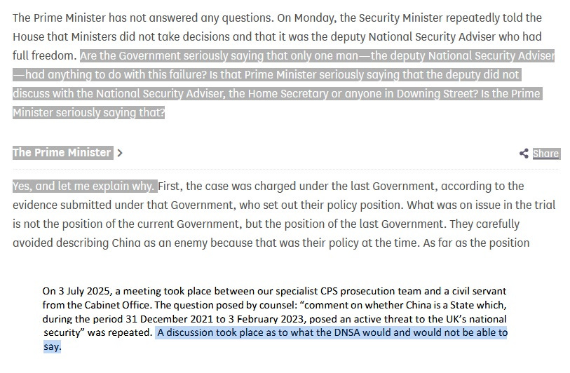 The government deliberately collapsed the trial of two men who spied on MPs for China, then Ministers lied to Parliament about it.