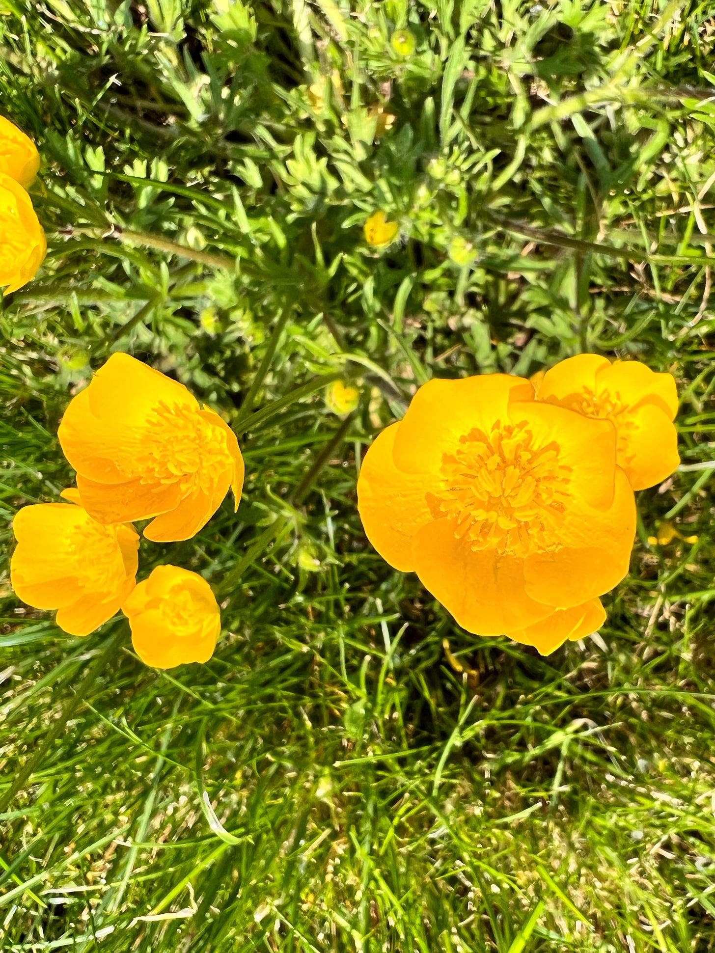 Grass is full of buttercups the exact colour of the cadmium yellow pencils we had at primary school. The cornflags are so pink they must be approaching full saturation of the cones in your retina.
